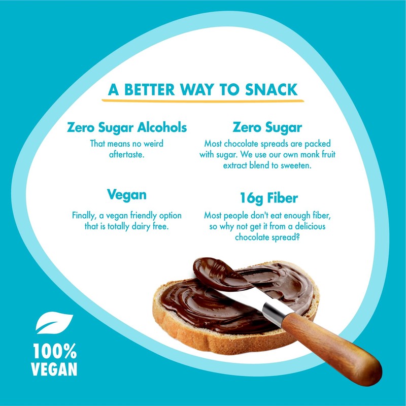 - ChocZero's vegan chocolate hazelnut spread. Dark, rich and no added sugar chocolate mixed in with healthy roasted filberts.