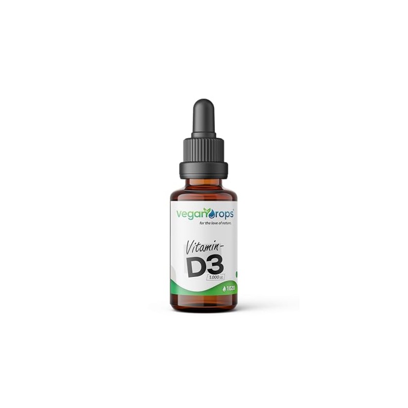 Vegan Drops Vitamin D3 drops - High-quality sun vitamin supply in liquid form. Support your immune system, bones and general well-being with the high-quality vitamin D3 drops from Vegan Drops. Each drop delivers 25 µg (1000 IU.) Vitamin D3, which plays a crucial role in many important body functions. Vitamin D contributes to the normal functioning of the immune system, supports the maintenance of healthy bones and teeth and is involved in normal muscle function. Especially in the sun-poor months or with a vegan diet, a targeted intake of vitamin D can be useful. The minimalist formula with only 2 ingredients ensures optimal purity and compatibility: the drops contain only vitamin D3 and high-quality MCT oil from coconuts - without alcohol, additives or unnecessary flavours. Thanks to the practical teardrop shape, taking it is particularly easy and flexible. With 1020 drops per bottle, the vitamin D3 lasts for many months and can be individually dosed. The Vegan Drops Vitamin D3 is 100% vegan, alcohol-free and is manufactured under the highest quality standards in Germany. It is the perfect choice for anyone looking for a high-quality and easy way to daily vitamin D supply.