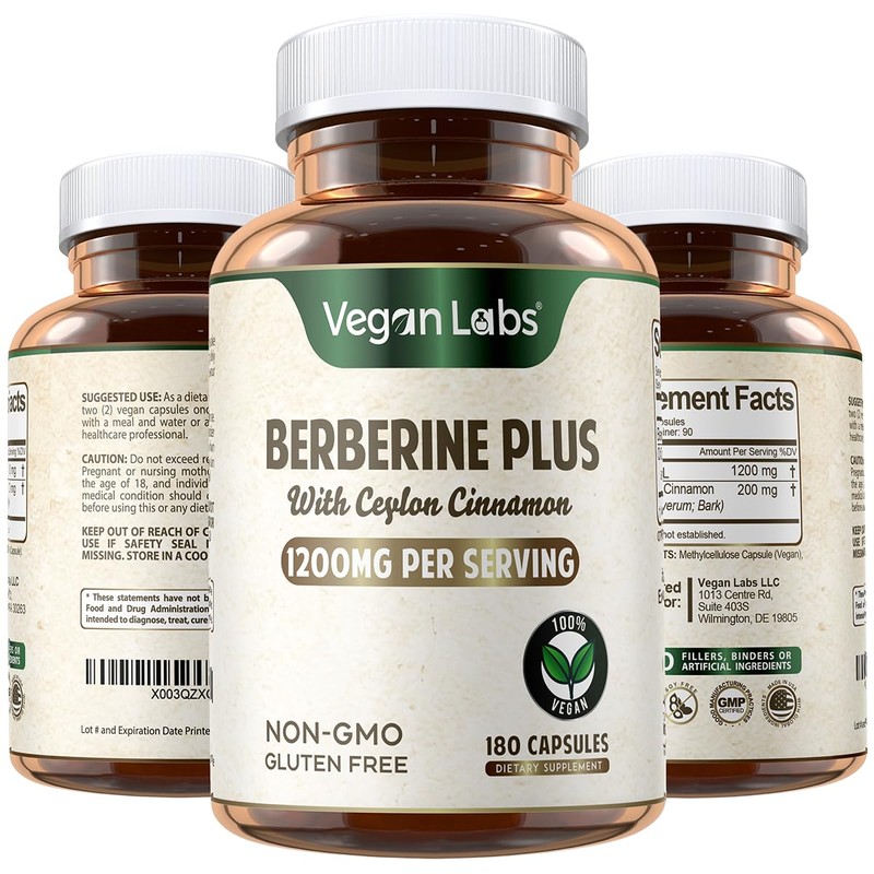 Vegan Labs Berberine HCL 1200MG with Organic Ceylon Cinnamon- 180 Vegan Capsules- Supports Overall Health and Immune System