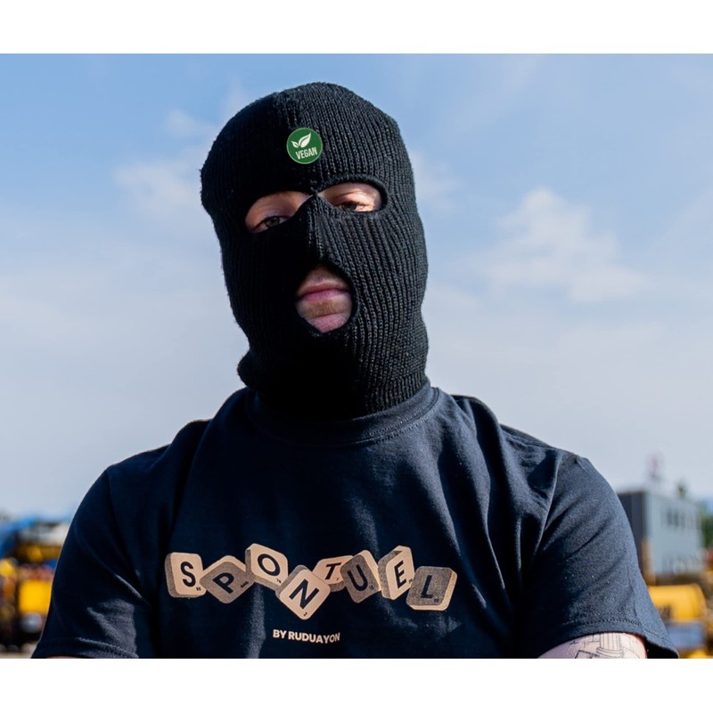 Vegan Logo Embroidered Three Hole Ski Mask Balaclava (Black)