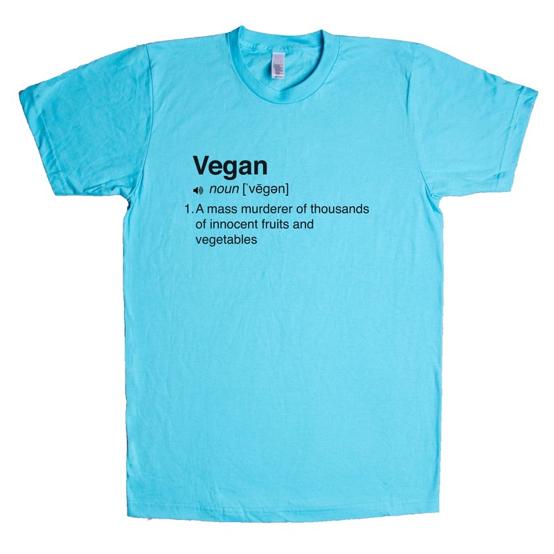 Vegan [Noun] A Mass Murderer of Thousands of Innocent Fruits and Vegetables Unisex T Shirt Tahiti-Blue Large