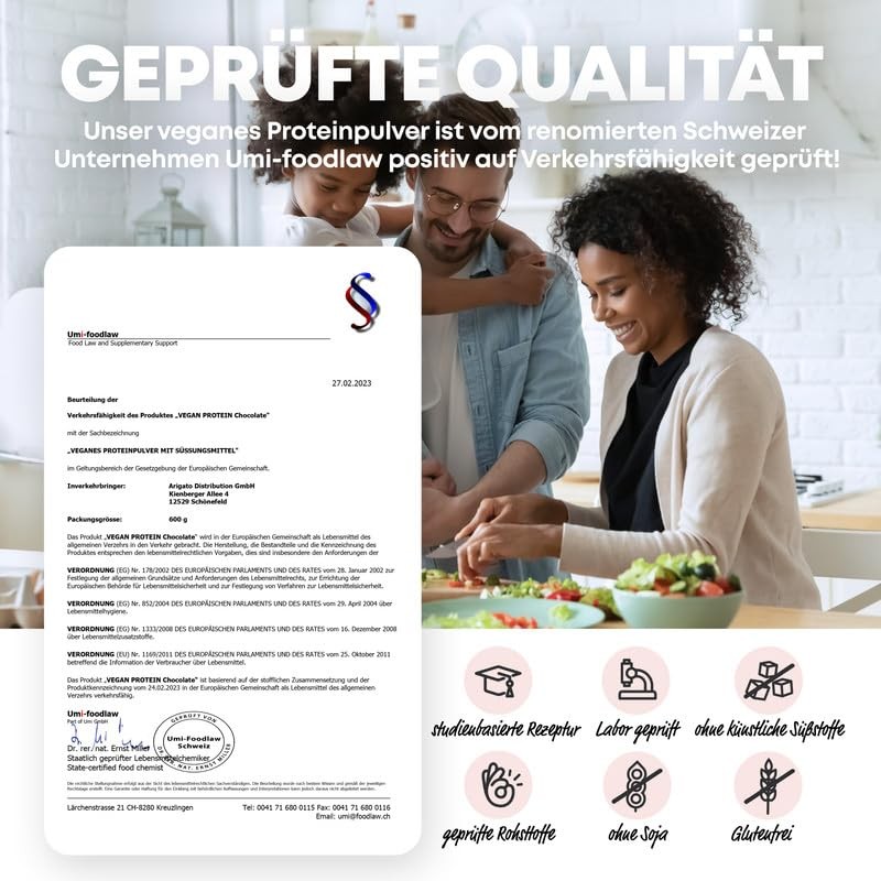 - Our yes vegan promise: just like all our products, protein powder vegan without soy as well as without unnecessary additives and has been developed with heart and mind. Convince yourself of our vegan protein shake.