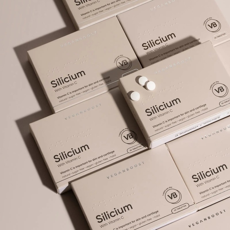 The Veganboost Silicium Tablets are your daily beauty boost from within. These supplements contain a powerful combination of silicium and vitamin C and are specially developed to naturally support your skin, cartilage and bones. Easy to take and perfect to add to your daily routine for a healthy and radiant look.