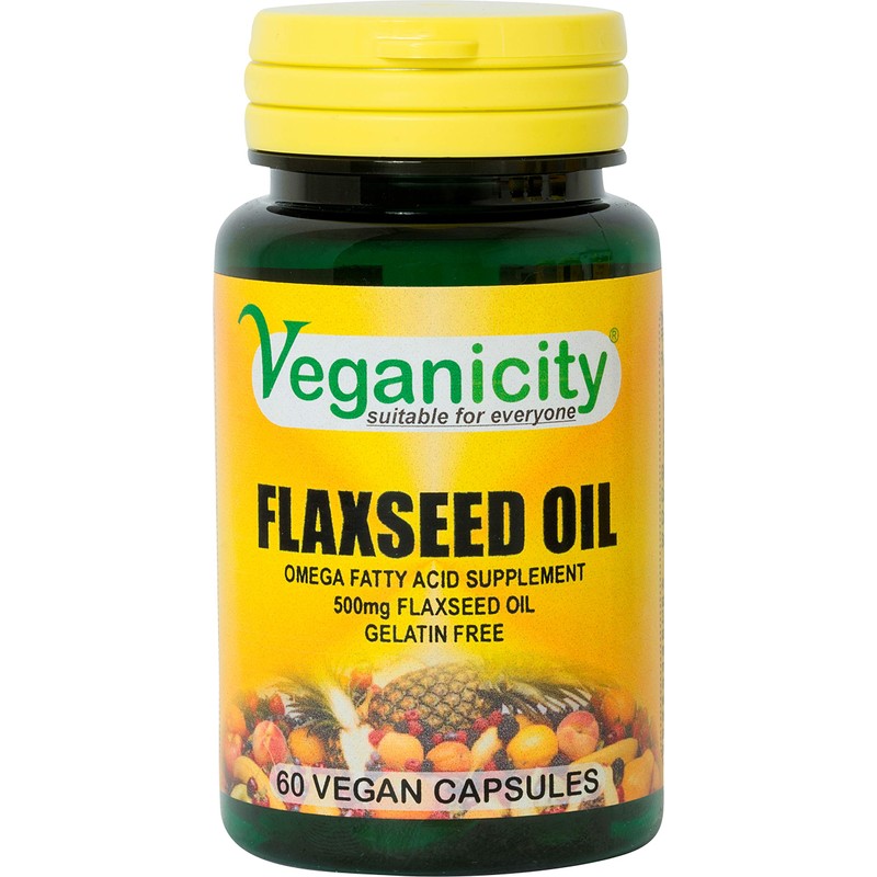 Veganicity Flaxseed Oil 500mg : Omega-3, -6, -9 Fatty Acid Supplement - 60 Gelatin Free Capsules, in a Planet-Friendly 99% Recycled Pot
