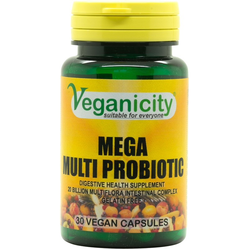 Veganicity Mega Multi Probiotic 20 Billion Multi-strain Probiotic : Digestive Health Supplement : 30 Vegan Capsules, in a planet-friendly 99% recycled pot