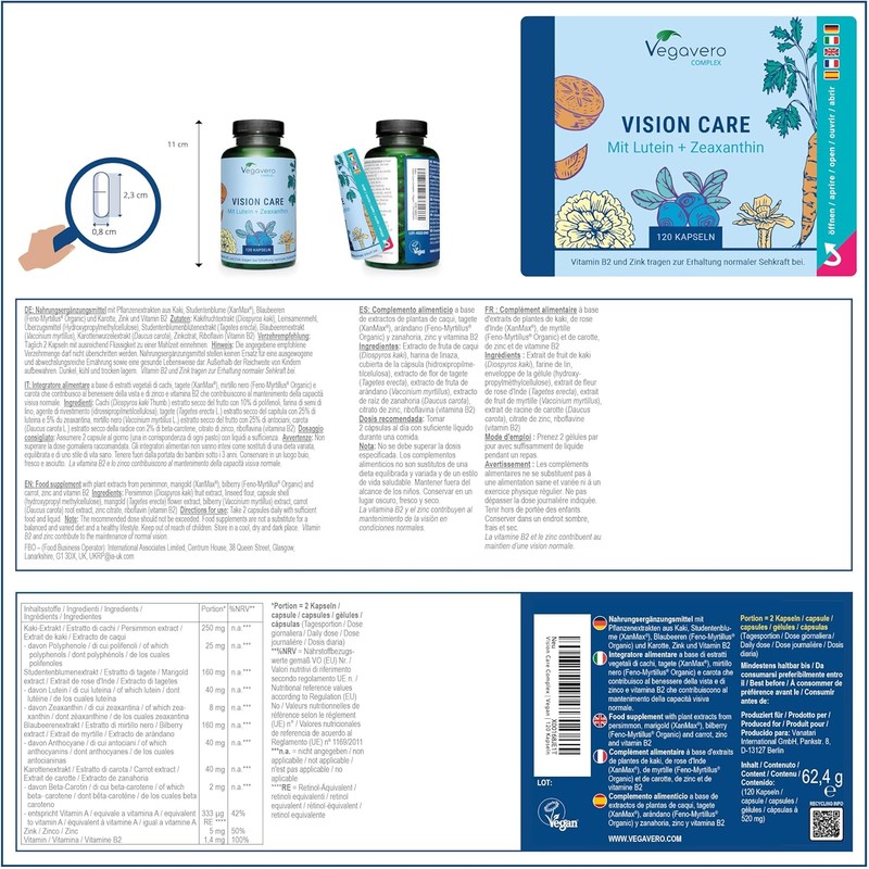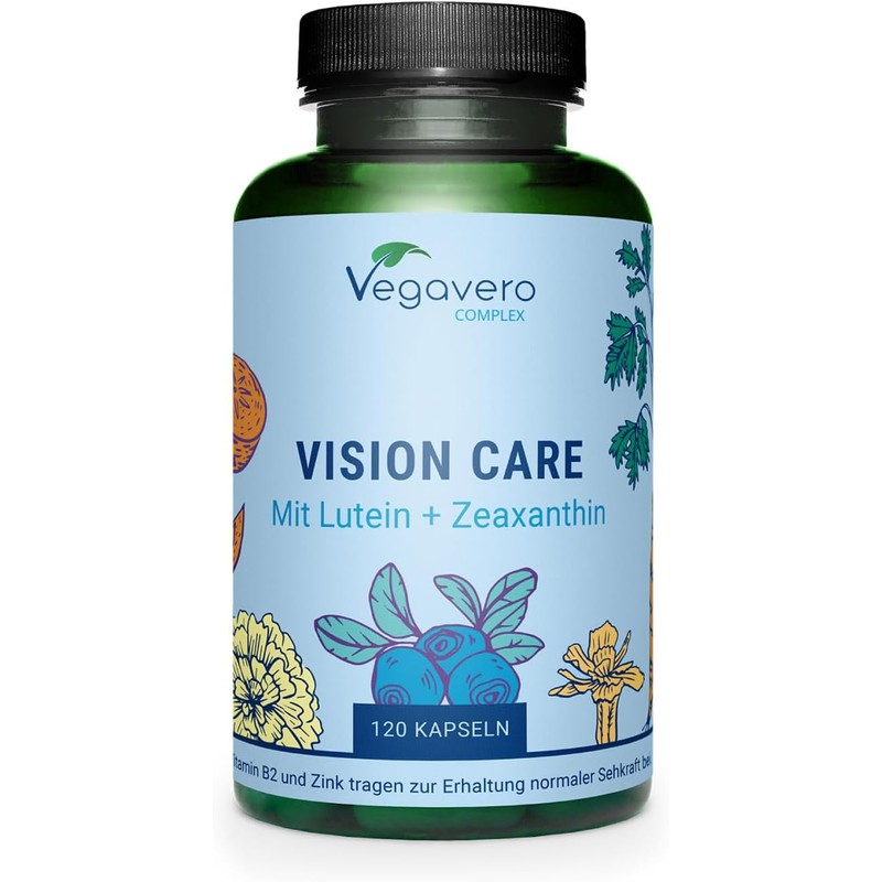 Vegavero Eye Vitamins – Lutein, Zeaxanthin, Bilberry, Beta-Carotene, Zinc & B2 – Vision Support Supplement – 120 Vegan Capsules – No Additives, Lab-Tested Formula