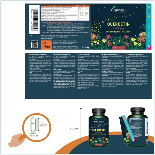 Vegavero Vegavero Quercetin 1000 mg | with Vitamin C, Bromelain and Piperine ...