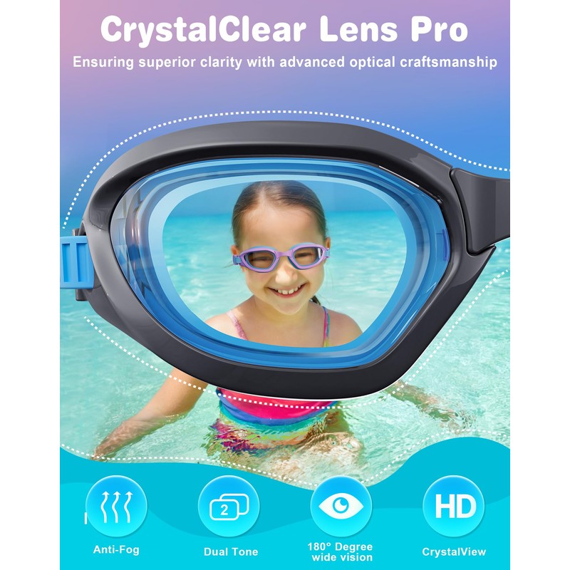Vegemono Kids Swim Goggles in Candy Dual-Tone, Adjustable Nose Pads & Soft Silicone for Leak-proof Fit Across Ages(6-14), Clear Wide Vision & Anti-Fog &Anti-UV, With Fashion Hard Protective Case