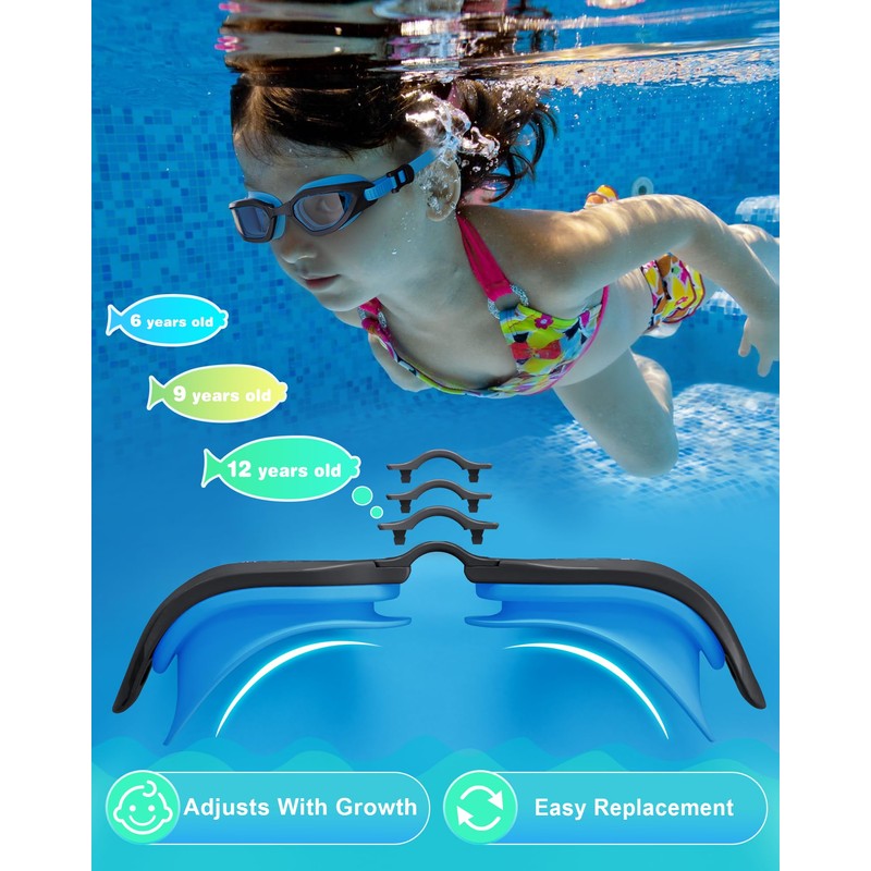 - Science-Fit Design|Age-Adaptive Comfort 4 interchangeable nose pads engineered from 500+ child facial scans grow with 6-14-year-olds, preventing leaks & irritation. CPC-certified odorless silicone gaskets deliver zero-pressure 3D sealing. Foldable water goggles nose pads fits in small pockets for on-the-go storage.