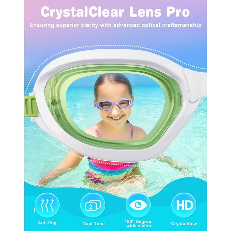 Vegemono Kids Swim Goggles in Candy Dual-Tone, Adjustable Nose Pads & Soft Silicone for Leak-proof Fit Across Ages(6-14), Clear Wide Vision & Anti-Fog &Anti-UV, With Fashion Hard Protective Case