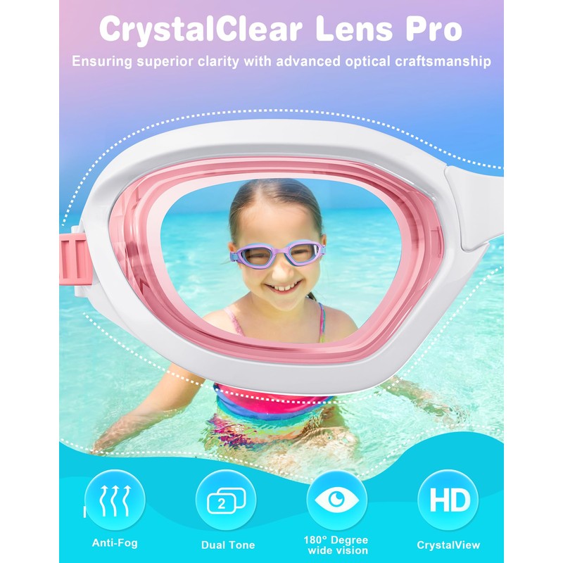 Vegemono Kids Swim Goggles in Candy Dual-Tone, Adjustable Nose Pads & Soft Silicone for Leak-proof Fit Across Ages(6-14), Clear Wide Vision & Anti-Fog &Anti-UV, With Fashion Hard Protective Case
