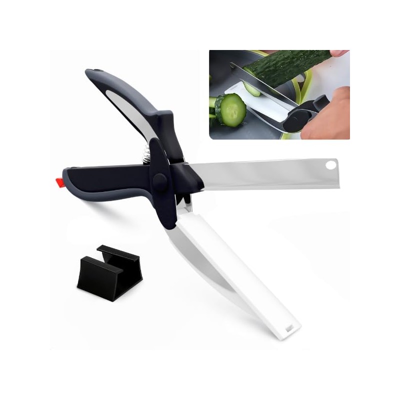 - Unique Design of Kitchen Vegetable Chopper Scissors: Combination of cutting board scissors makes cutting, slicing and dicing very easy and fast. Now save your time and money with our salad chopper scissors. Instead of separate knife and cutting board use these food cutting scissors.
