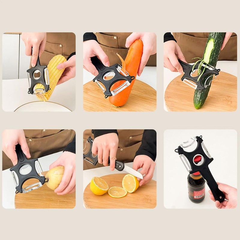 • Versatile Peeling Solution: Featuring multiple functions such as peeler, corn shucker, corer, bottle opener, and fruit cutter to handle peeling, shelling, and shredding with ease
