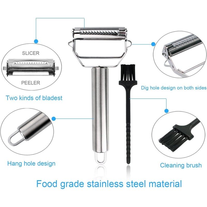 Vegetable Peeler, Potato Peeler, Julienne Peeler for Kitchen, Double Sided Blades 2 in 1 Stainless Steel Julienne Peeler for Carrots, Cucumbers, Fruits with Cleaning Brush