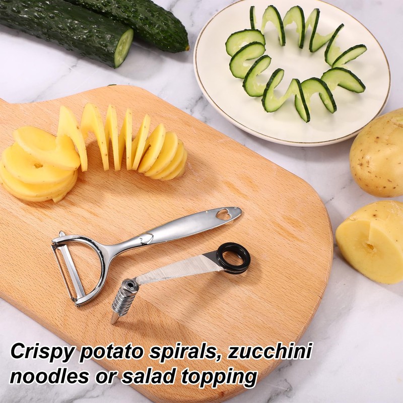 - Easy to Use: To create wonderful spiral slices, easily set the spiral cutter over food and twist. The V-shaped knife and kitchen peelers are also sharp, which facilitates food carvings and peeling.