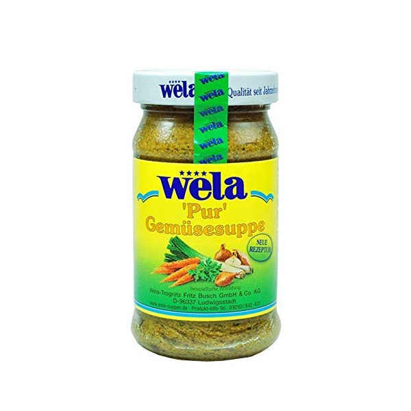 Preparation: To make a plate of the finest Wela vegetable soup 'Pur', approx. a level teaspoon (4 g) of paste pour 1/4 litre of boiling water (stir briefly).