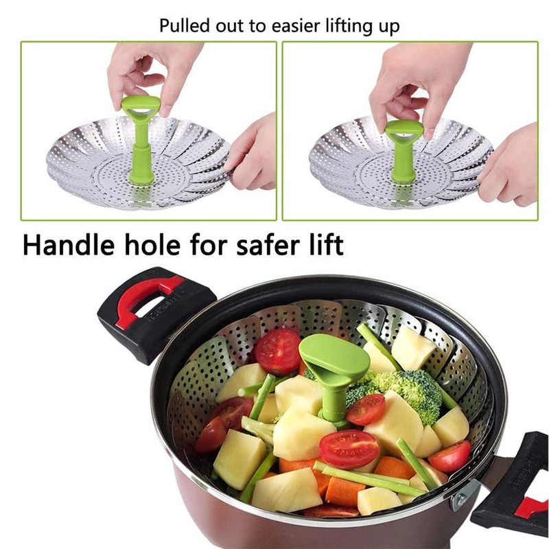 Vegetable Steamer Basket, Stainless Steel Folding Steamer with Extending Removable Center Handle Insert for Veggie Seafood Cooking to Fit Various Size Pot (6.4" to 10")