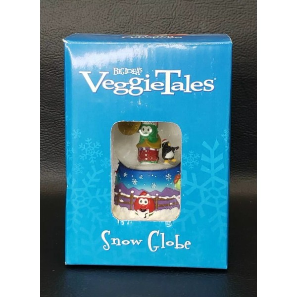New in box is this 2007 Big Ideas Veggie Tales minifigure Merry Christmas snow globe. Condition is new. Ships USPS First Class. Some discoloration may appear on individual box. However all items are as seen and described.