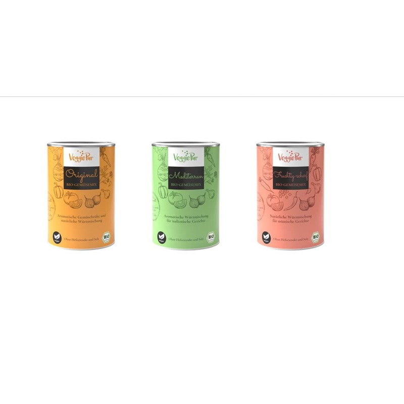 VeggiePur Organic Vegetable Mix, 390 g (The Tasting Package: Original, Mediterranean and Sharp Mixture)