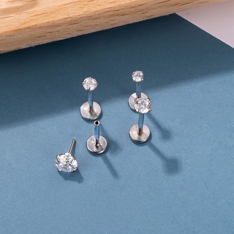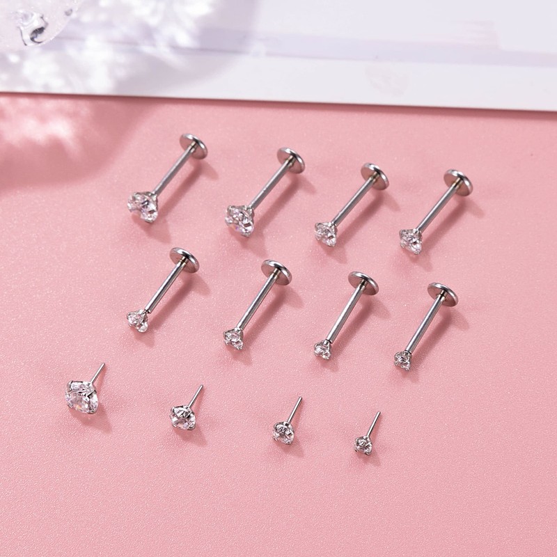 Vegolita 8PCS 316L Stainless Steel 16G 18G 20G Threadless Labret Monroe Lip Rings Cartilage Helix Tragus Earrings Stud CZ Push in Nose Rings Medusa Piercing Jewelry with Extra Top CZ 16G 8mm