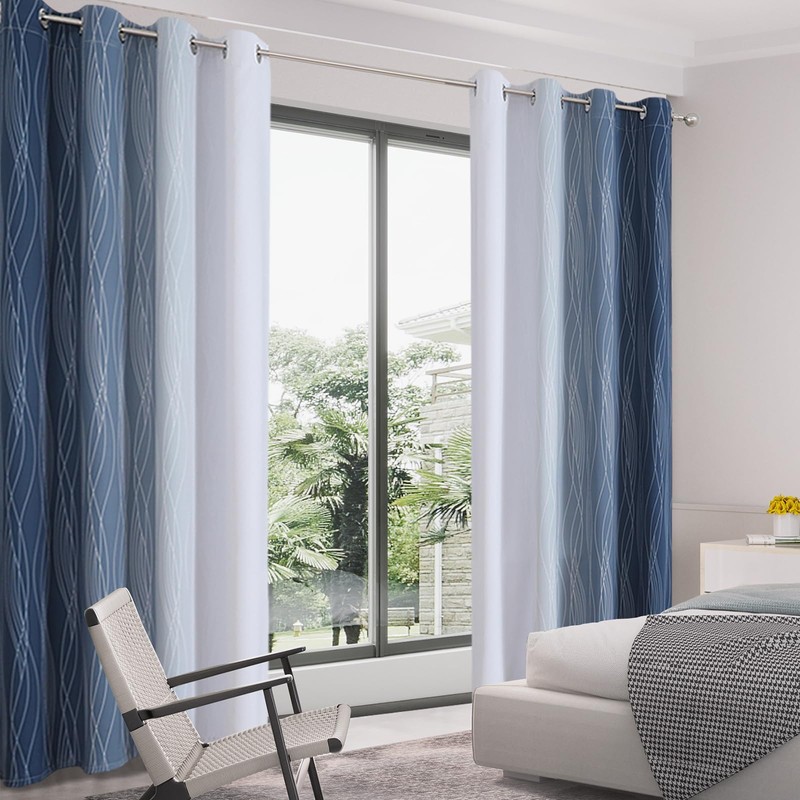 VEHEDE Ombre Colour Gradient Soundproofing Opaque Curtains Living Room Blackout Curtains Thermal Curtain Cold Protection Curtains with Eyelets Bedroom H 214 x W 107 cm, Dark Blue and White, Set of 2