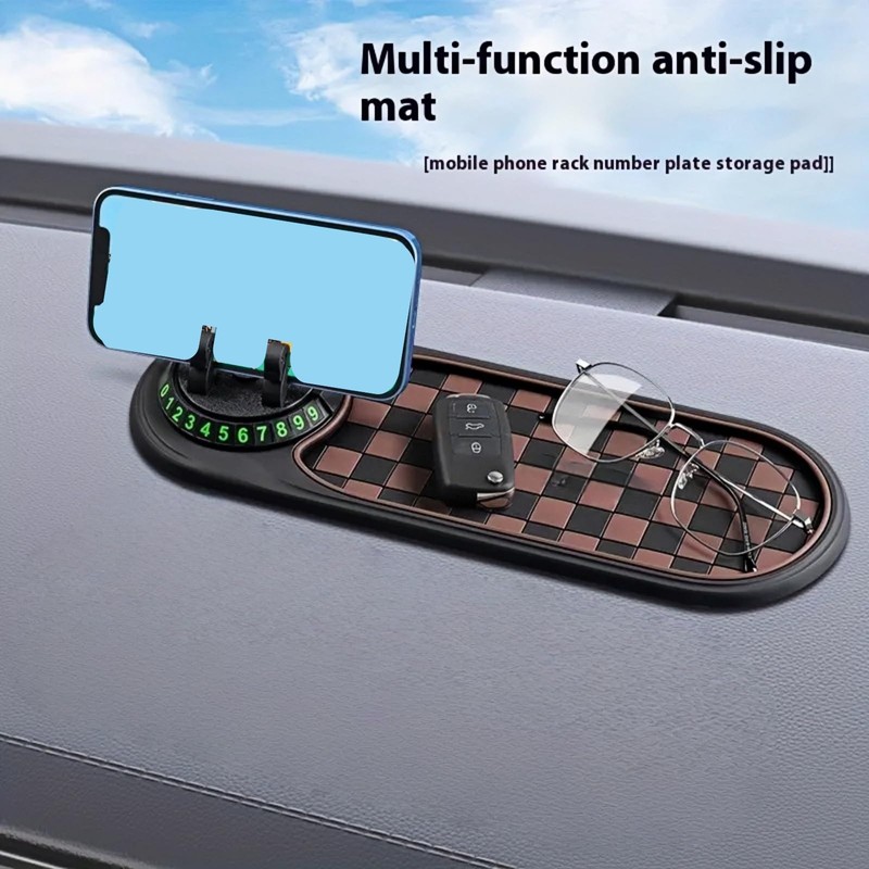 Vehicle-Mounted Anti-Slip Mat,Car Non-Slip Dash Mat,Multifunction Car Anti-S/lip M/at with Temporary Parking Number,A/nti-S/lip C/ar Dashboard Rotatable Pads with Auto Phone Holder Stand,Brown