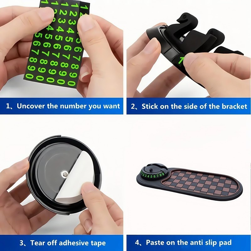 - PARKING NUMBER DISPLAY: The anti-slip car dashboard pads simply rotate the holder to reveal or hide your contact details, the auto phone holder stand ensuring privacy when not needed. The numbers of the anti-slide fixate mat are clearly visible from outside the car, making car accessories convenient for others to reach you