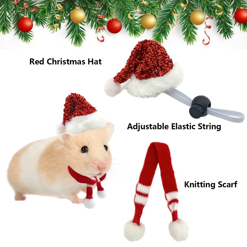- High Quality Materials: the Xmas Guinea Pig house bed is made of quality fleece, cozy and warm. The hamster Christmas hats are made of sequin fabric, very stereoscopic. The scarves are made of soft acrylic yarn.