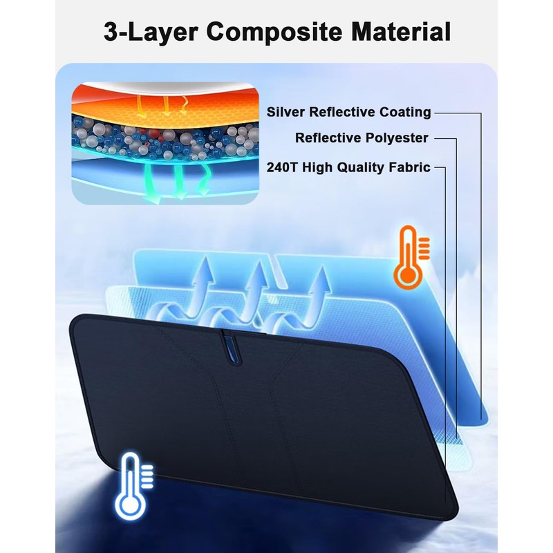 - FOLDABLE DESIGN : Our sunshade design with foldable design. When you are not using it, you can easily fold it into a volume with a radius of 8 inches, making it more convenient to store.