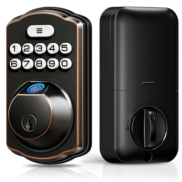 Veise Fingerprint Door Lock, Keyless Entry, Auto Lock, Electronic Keypad Deadbolt for Front Door, Biometric, Anti-Peeking Password, Easy Install, Oil Rubbed Bronze