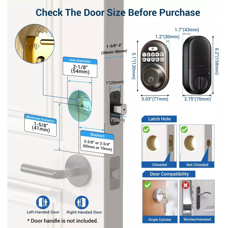 - Easy to Install: Just with a screwdriver, the door lock will be easily installed and program all by yourself in several minutes, compatible with all American standard left and right handed doors.