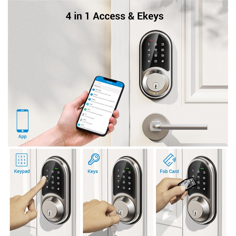 - Keyless Entry Door Lock: The smart lock has a 5 in 1 access method, APP + Fobs + password + key + thumb turn.