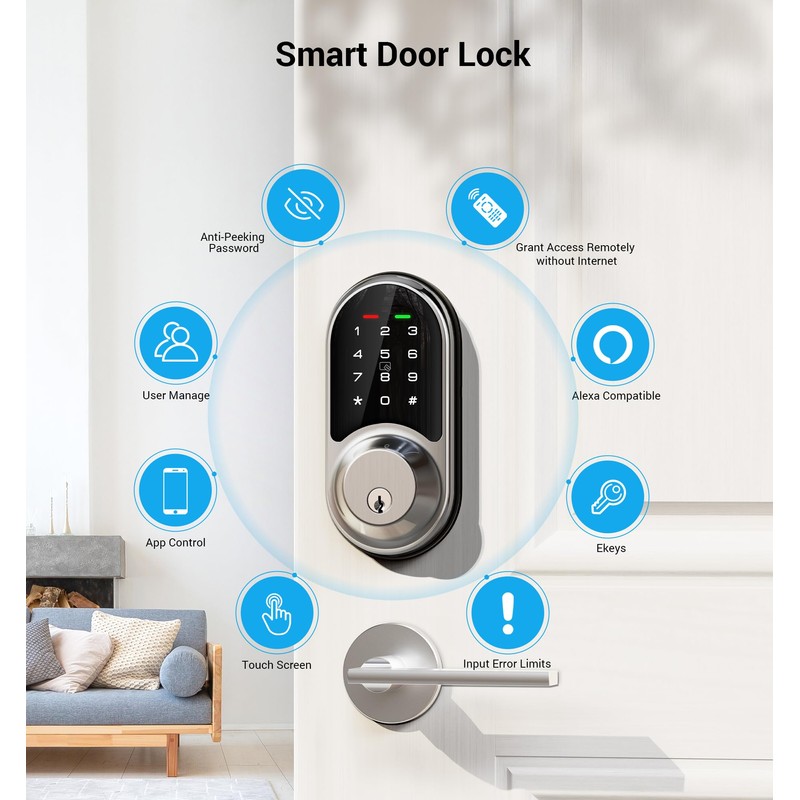 - Smart Lock: Smart deadbolt can be set to lock automatically (1s-900s). It can also be locked by "one-touch lock" via the touch screen keyboard.