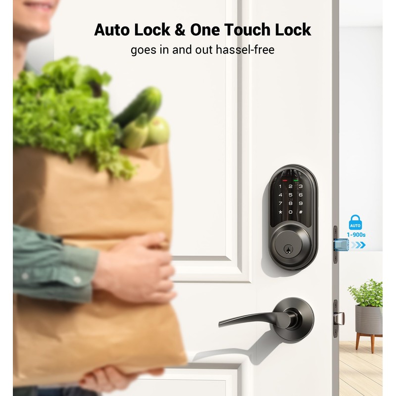 • Smart Lock: Smart deadbolt can be set to lock automatically (1s-900s). It can also be locked by "one-touch lock" via the touch screen keyboard.