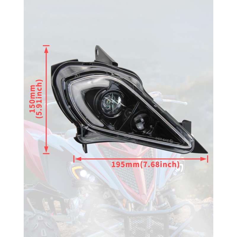 - LED headlights assembly compatible with Yamaha Raptor 700 2006-2024, YFZ 450 2004-2009/ 2012-2013, YFZ 450R 2009-2022, YFZ450X 2010-2011, Raptor 250 2008-2013, Raptor 350 2006-2013, Wolverine 450 2006-2010, Wolverine 350 2006-2009; Replace #5TG-84310-03-00, 5TG-84110-03-00