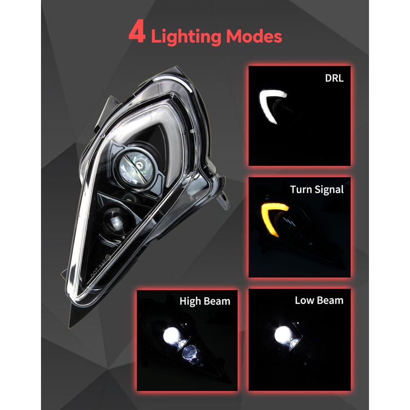 - Headlights have been upgraded in appearance with two built-in round LED beads and a round half-triangle light design at the top, giving the headlights a more stylish and unique appearance. Plug and play design, no need to modify the wiring