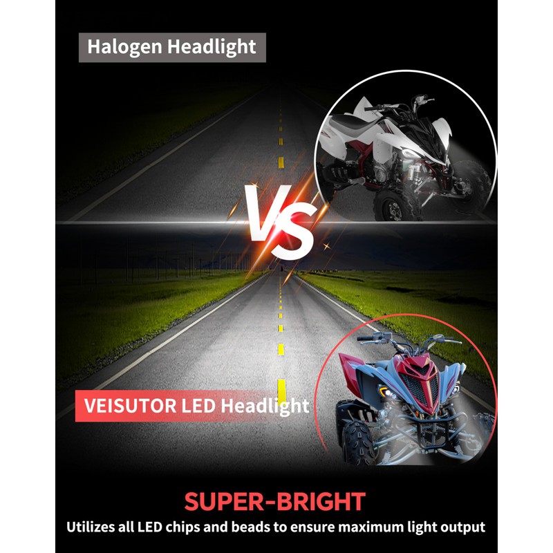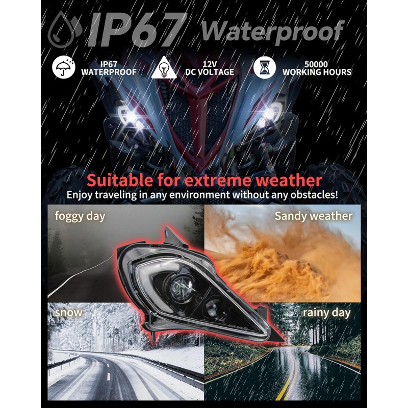 - VEISUTOR LED headlamps have 4 lighting modes: DRL + low + high beam + turn signal light; Uniform Light, no blind areas and dim spots; IP67 waterproof, can be used in any harsh weather conditions