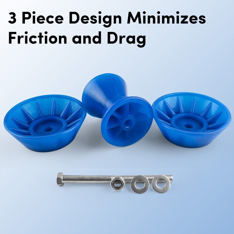 VEITHI Boat Trailer Roller 4 inch, 3-Piece Polyurethane Bow Roller with 1/2" Shaft and End Bells, Bow Roller for Boat Trailer, for Stopping Boat Trailer (Blue)
