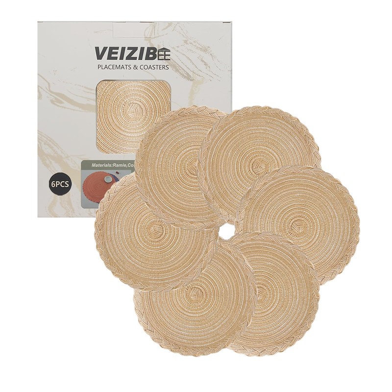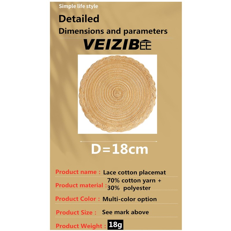 - ❶ Material: khaki color braided coasters set of 6 washable non-slip round place mats for kitchen dining table European style coffee mat, approx. 7 in (18 cm) across round indoor hand woven fabric table mats made of high-quality and environmentally friendly polyester fabric and cotton yarn woven