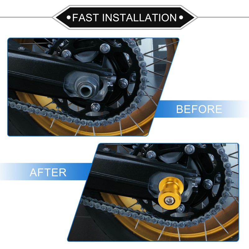 - Unique Benefits - Works greatly with race type swing arm brackets and add protection to your motorcycle in the event of a collision. These stand swing arm spools help to fix and stabilize your motorcycle swing arm stand in parking or repairing, economical and practical.