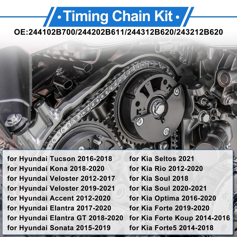 VekAuto 1 Set Engine Timing Chain Kit for Hyundai Accent Elantra Tucson Kona Veloster Sonata for Kia Rio Soul Optima Forte 1.6L 244102B700/244202B611/244312B620/243212B620