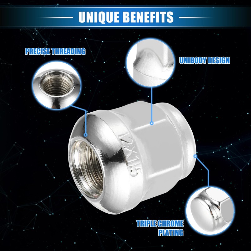 Unibody design prevents cracking and secures driving safety than two-piece nuts, fit precisely and tightly for and durability.