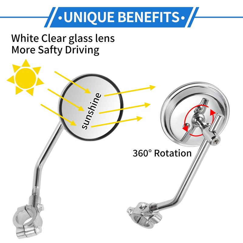 - Product Highlights:Rainproof Design: The motorcycle rear view mirror is designed with a one-piece rain cover to avoid rain drops adhering to the mirror surface in rainy and snowy weather leading to visual blurring, and it is safer to travel on rainy.