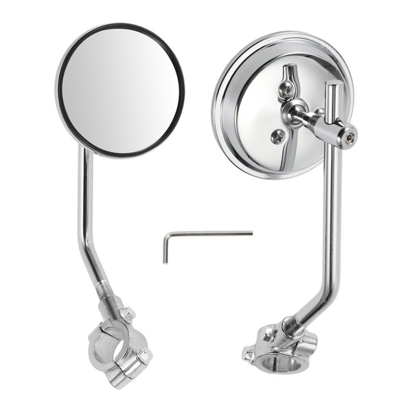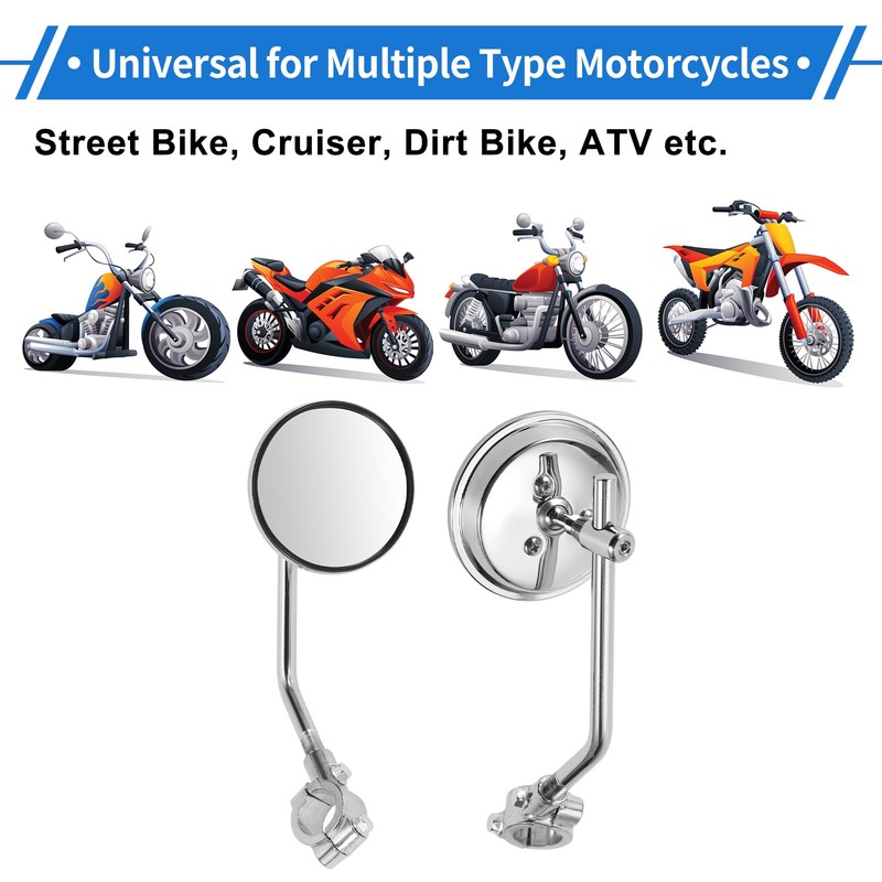 VekAuto 1set Motorcycle Rear View Mirrors Handlebar Mirrors Universal Adjustable Iron Plastic Chrome Silver Tone M10 Round Shape