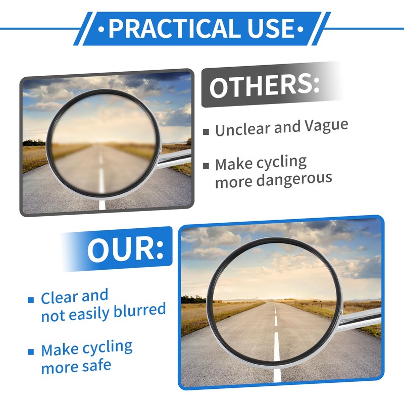 - Material:Sturdy aluminum alloy shell brings stronger impact resistance to make the mirror fixed firmly, and high-definition glass lenses provides high clarity and a wider angle of vision to easily see oncoming traffic and obstacles, day or night.