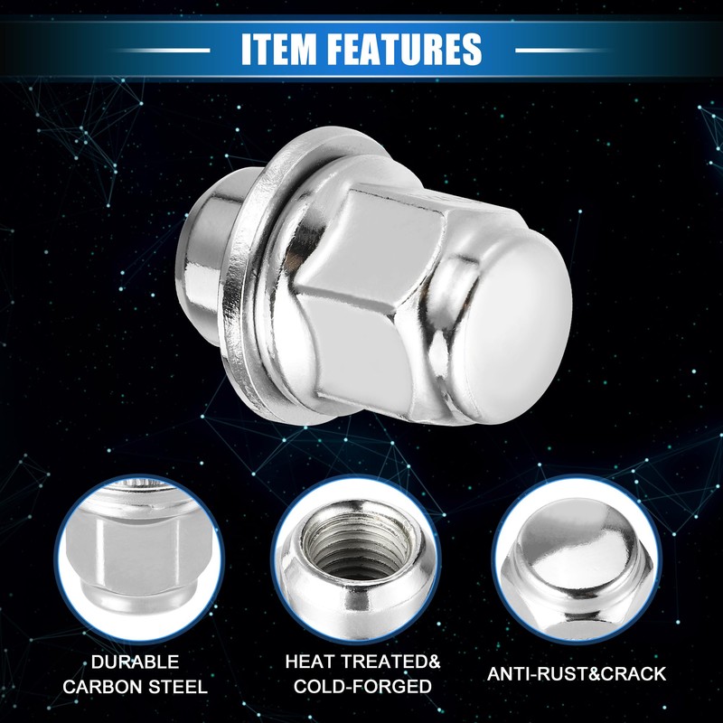 - Special Features - These M12x1.5, 1.46" long, 53/64"(21mm) Hex Wheel Lug Nuts made of durable cold forged and heat treated carbon steel, anti-rust, corrosion resistance and longevity.