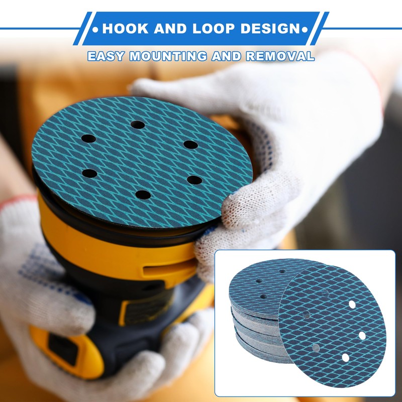 VekAuto 50 Pcs Sanding Discs, 6 Inch 6 Hole 120 Grit Hook and Loop Sandpaper Universal for Metal, Automotive Repair Durability and Flexibility Aluminum Oxide Paper Blue