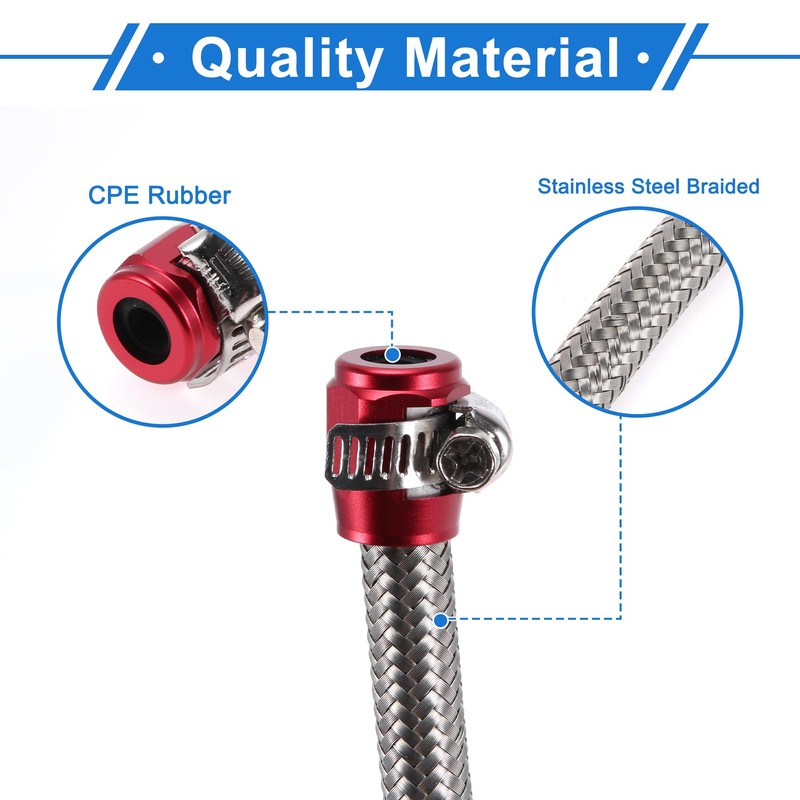 - Long-Lasting Fuel Line: The fuel hose is made of CPE,Stainless Steel Braid, which is durable and reliable,not easy to break or fade.the fuel line has good flame retardancy and great corrosion resistance.