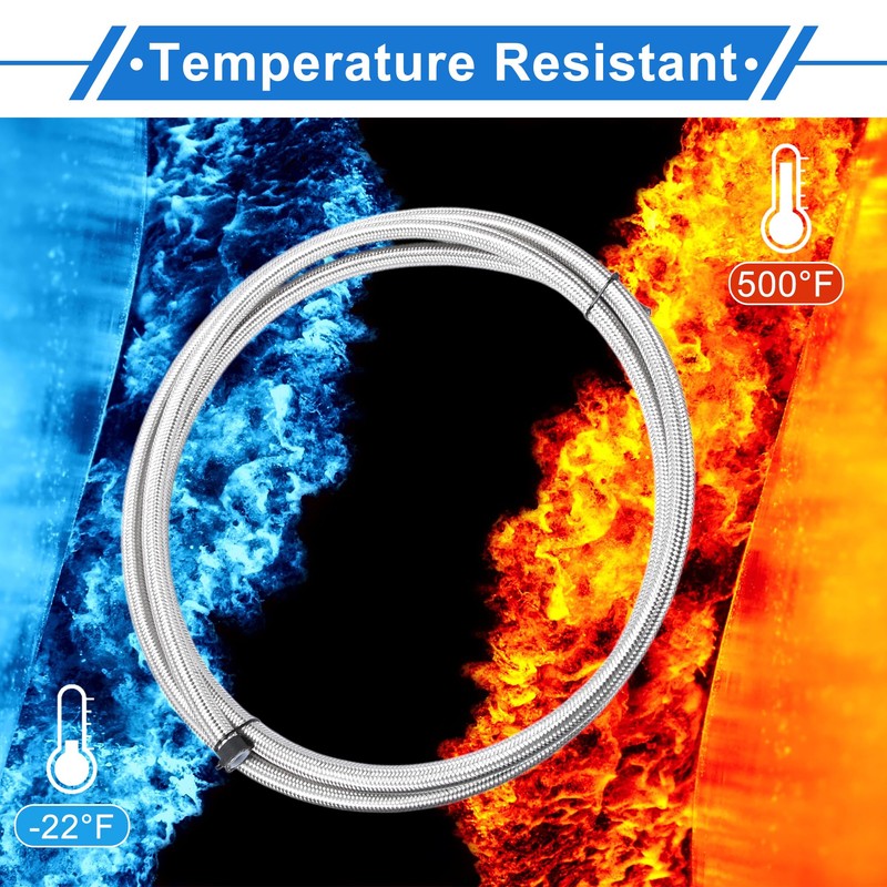 - Long-Lasting Fuel Line: The fuel hose is made of PTFE,Stainless Steel Braid, which is durable and reliable,not easy to break or fade.the fuel line has good flame retardancy and great corrosion resistance.