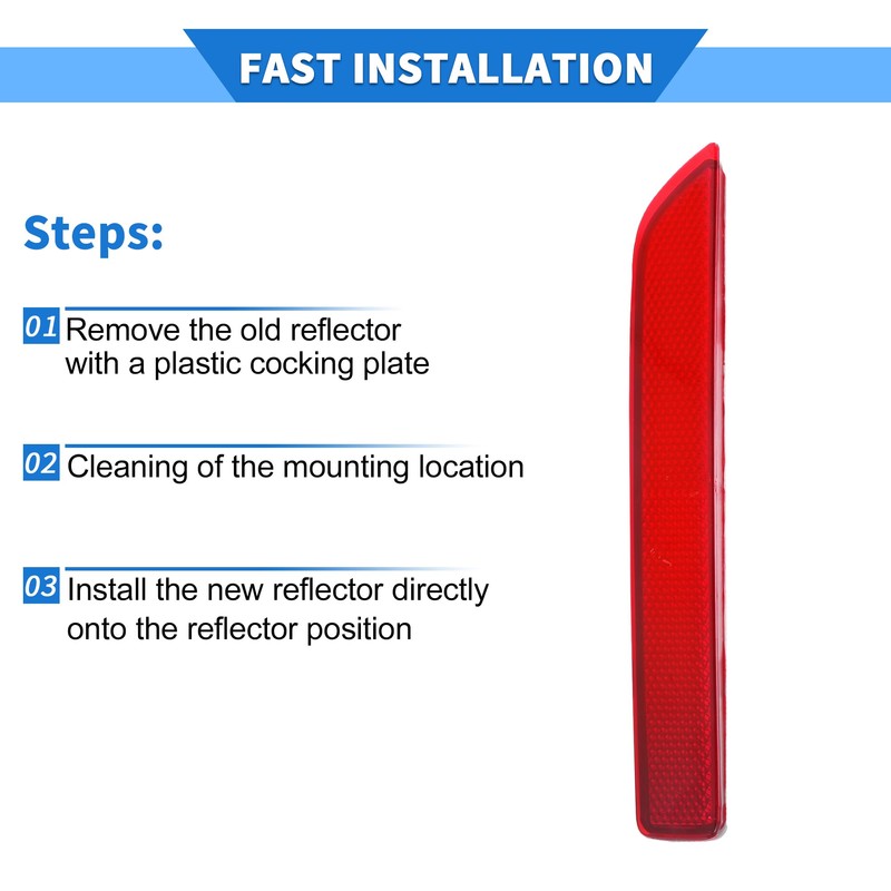 - Easy Installation - 1. Remove the old reflector with a plastic cocking plate, 2. Cleaning of the mounting location,3. Install the new reflector directly onto the reflector position.
